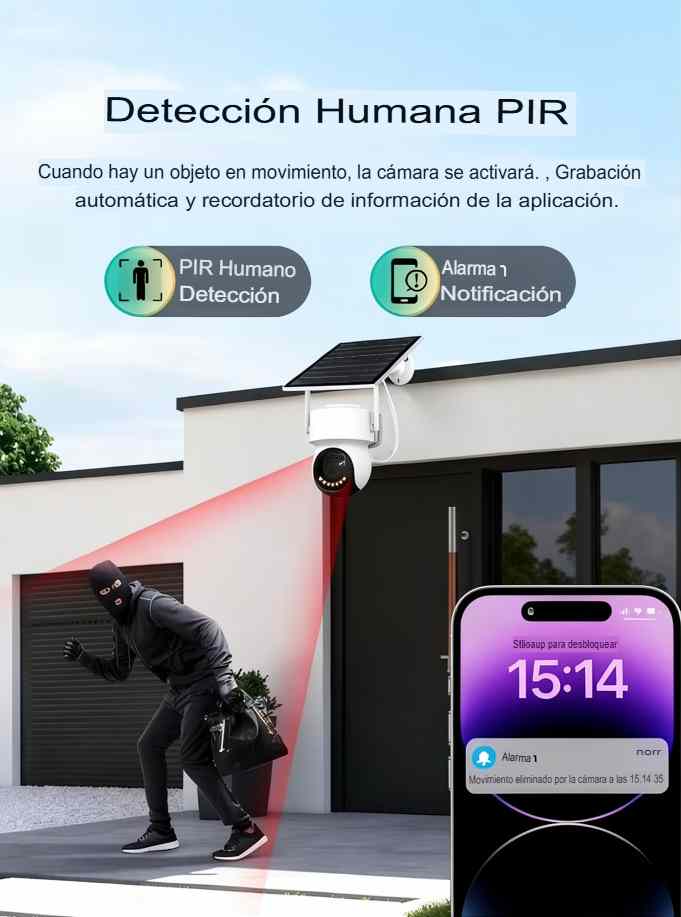 - Incluye detección humana, intrusión por área y alarma de voz DIY
